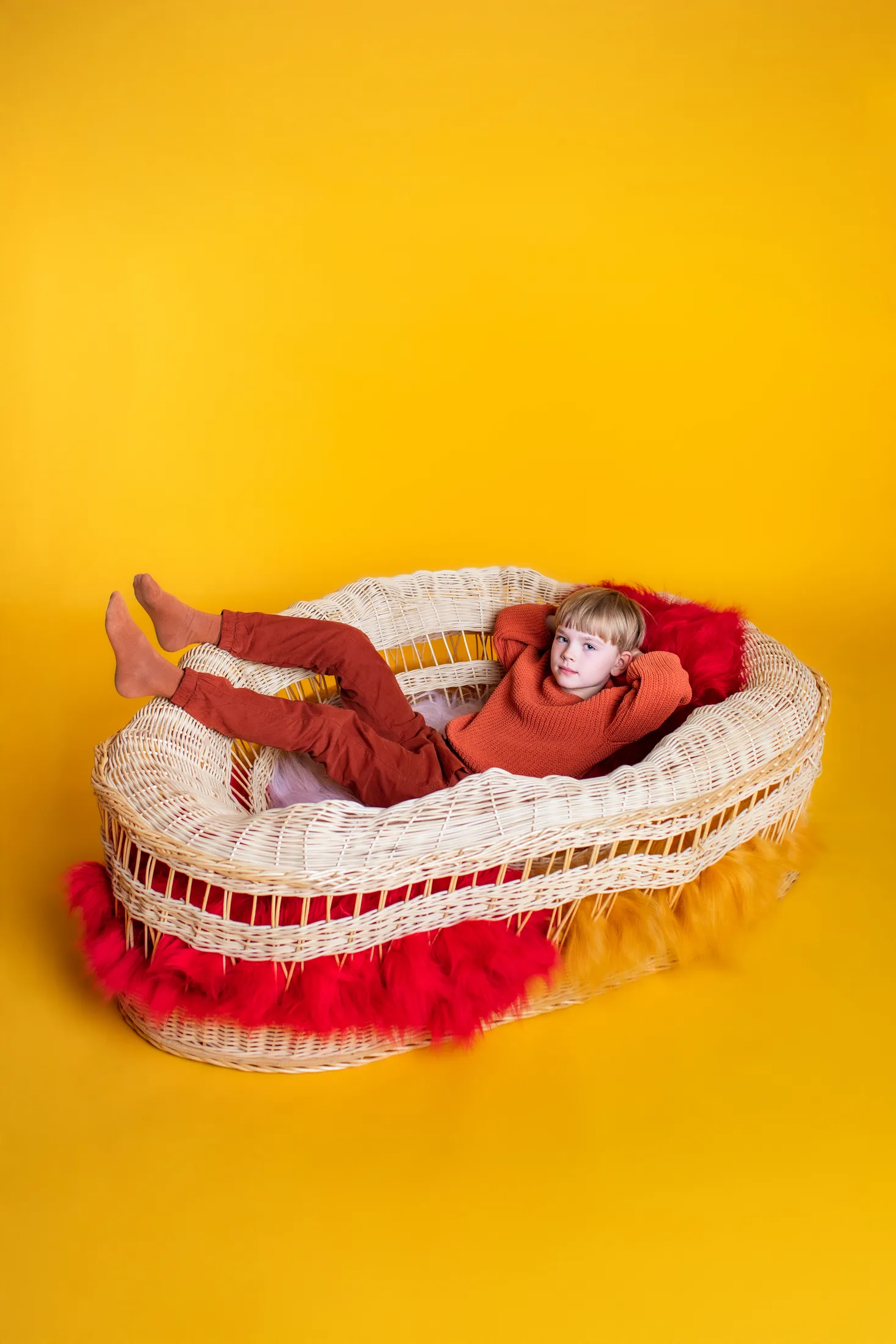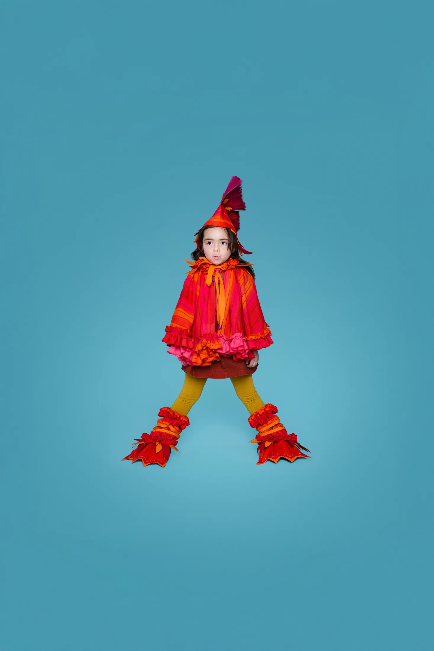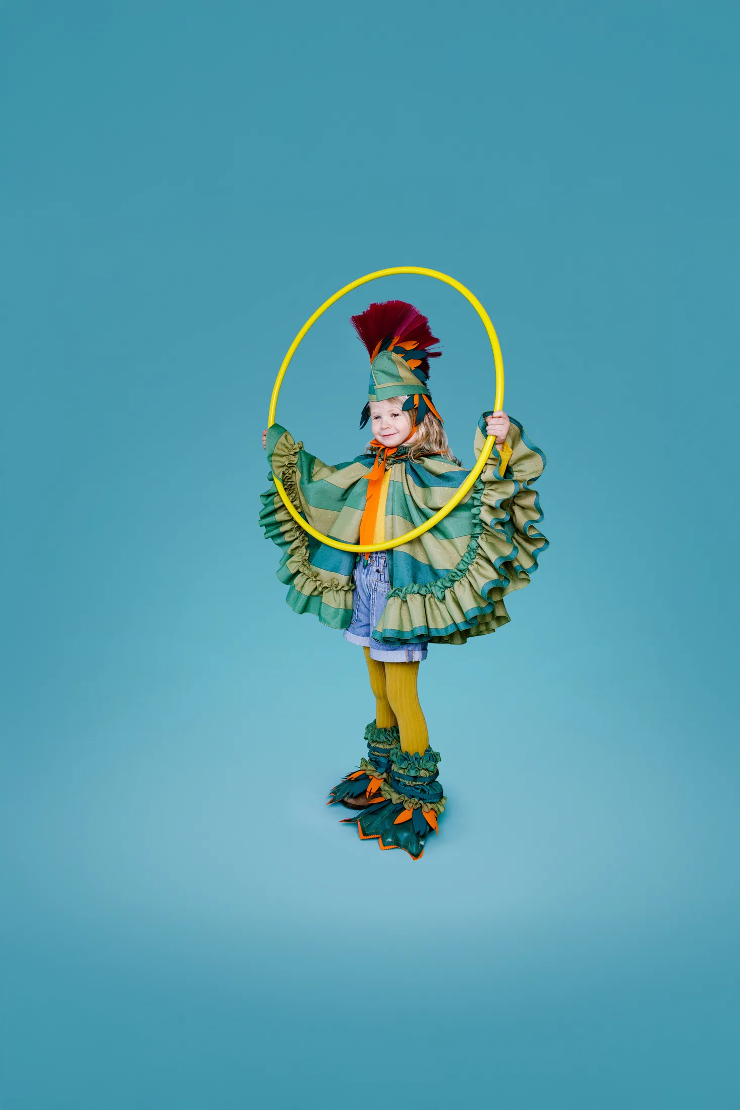 This was our first costume collection, and it’s an ode to the wonders of the animal kingdom and our imaginations. We tried to inspire children to explore a range of free play, adopting the diversity of the animals’ traits – whether that be the ‘introverted,’ self-sufficient shell of a snail or the ‘extroverted’ colours and movements of a lovebird.