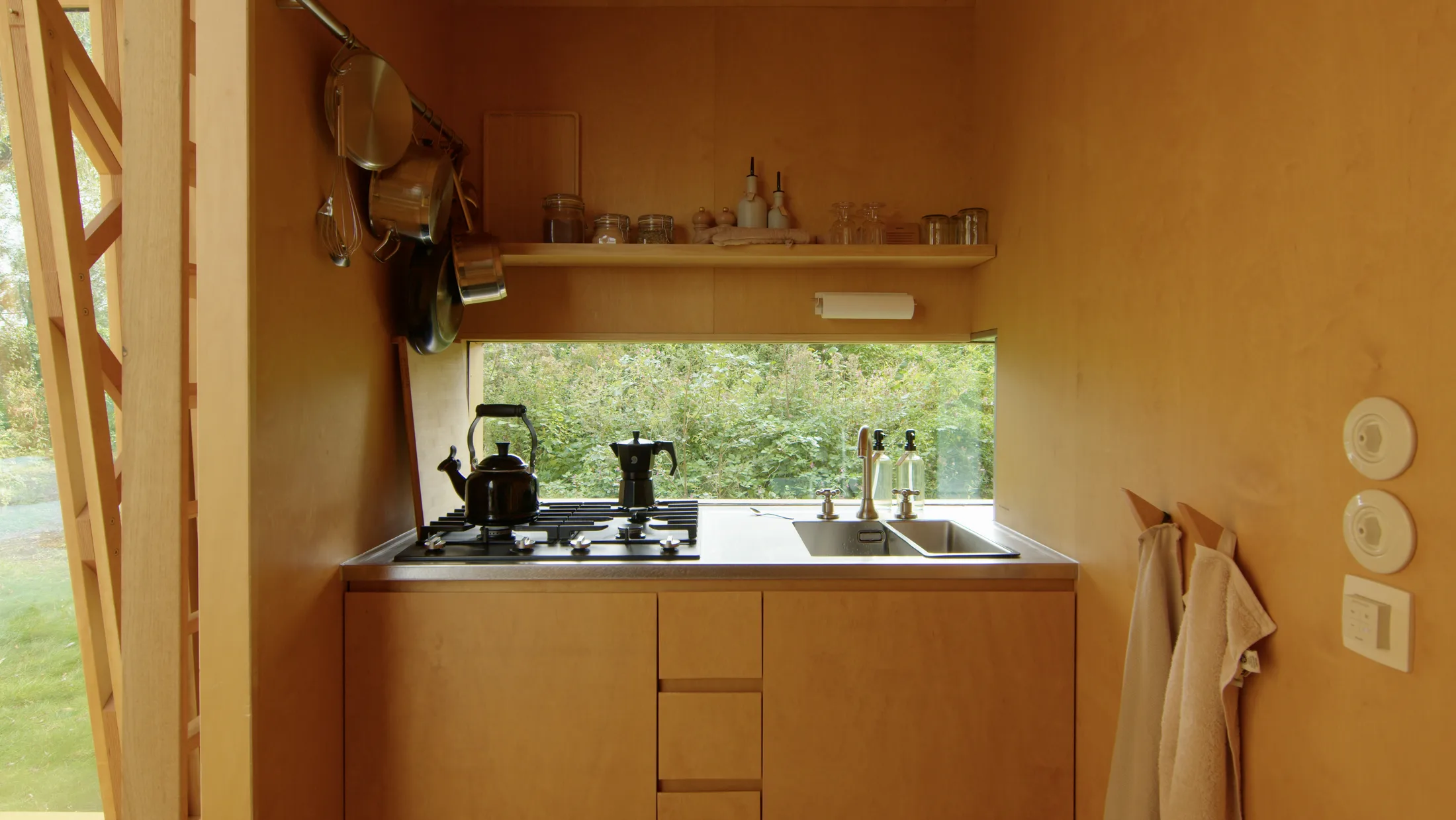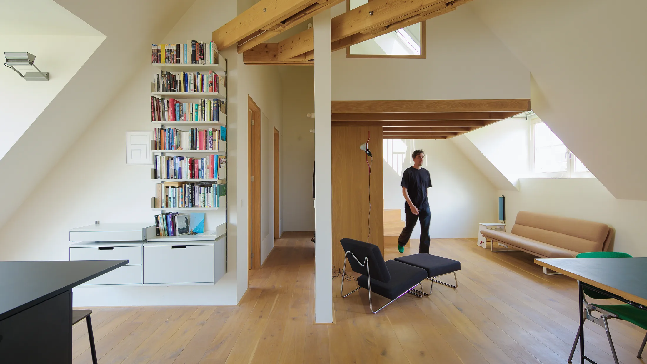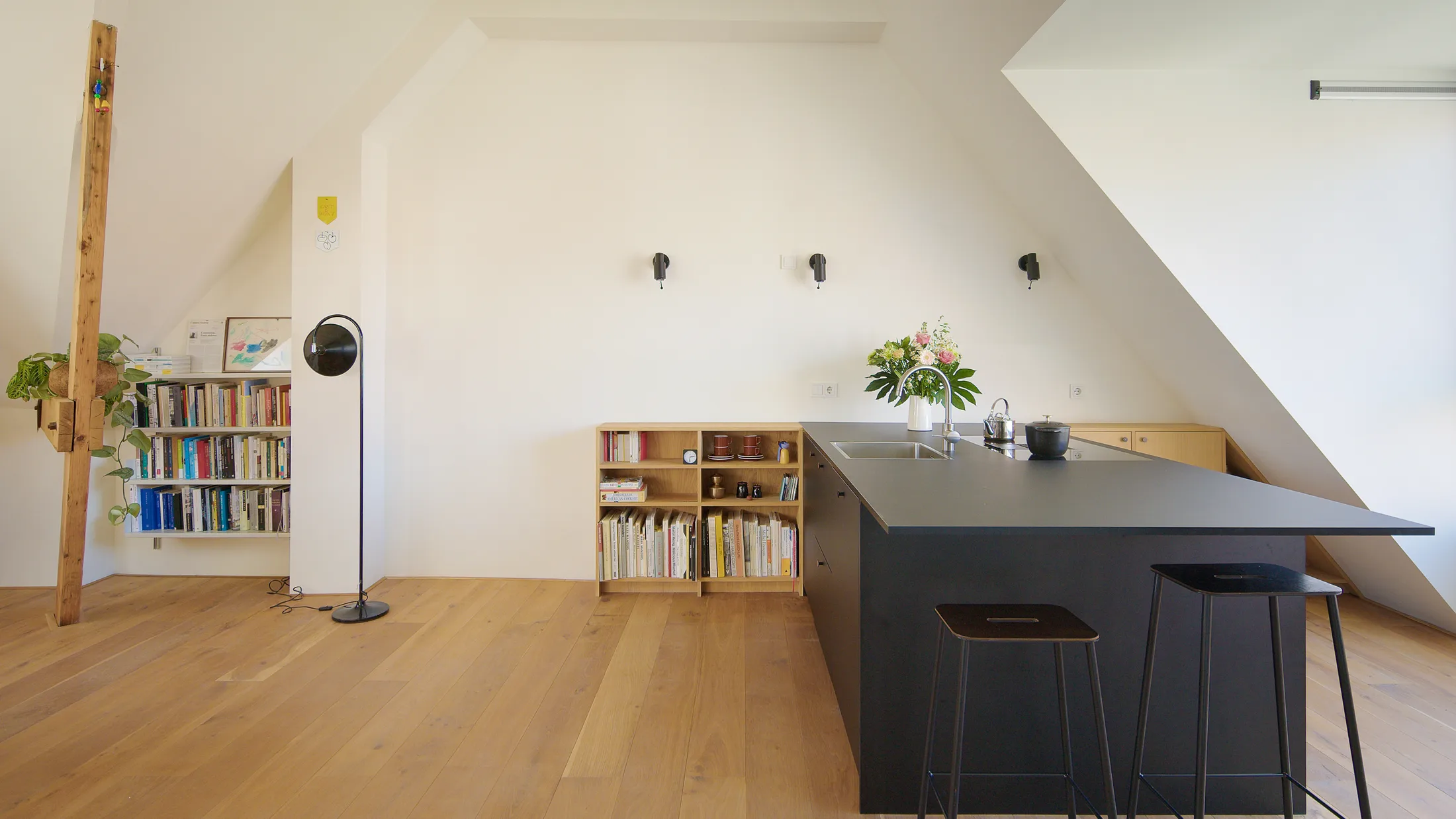 Designer and carpenter Marijn Kruikemeier took a once-empty shell in Amsterdam’s Jordaan and turned it into an elegant yet casual ground-floor home. Working within the constraints of a long, narrow plan in a 1905 social housing building, Kruikemeier and his partner Liya Yang built the apartment around a central, custom-built oak unit. The unit houses the bathroom, kitchen appliances, and technical systems, dividing the space without enclosing it. The result is a series of generous-feeling rooms that flow from the street-facing dining area to the kitchen, living space, and bedroom, with light entering from both ends. This sense of generosity is reinforced by the choice of full-size furniture, a long galley kitchen designed for cooking and entertaining, and a bedroom that opens directly onto a private garden at the rear.