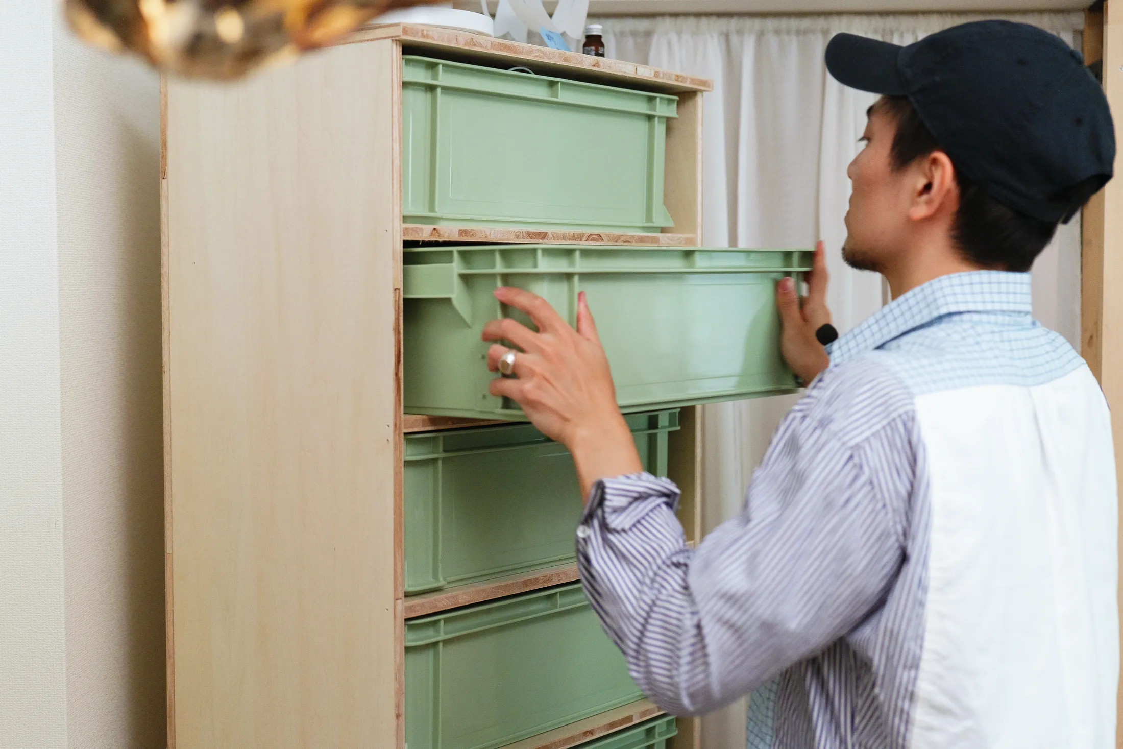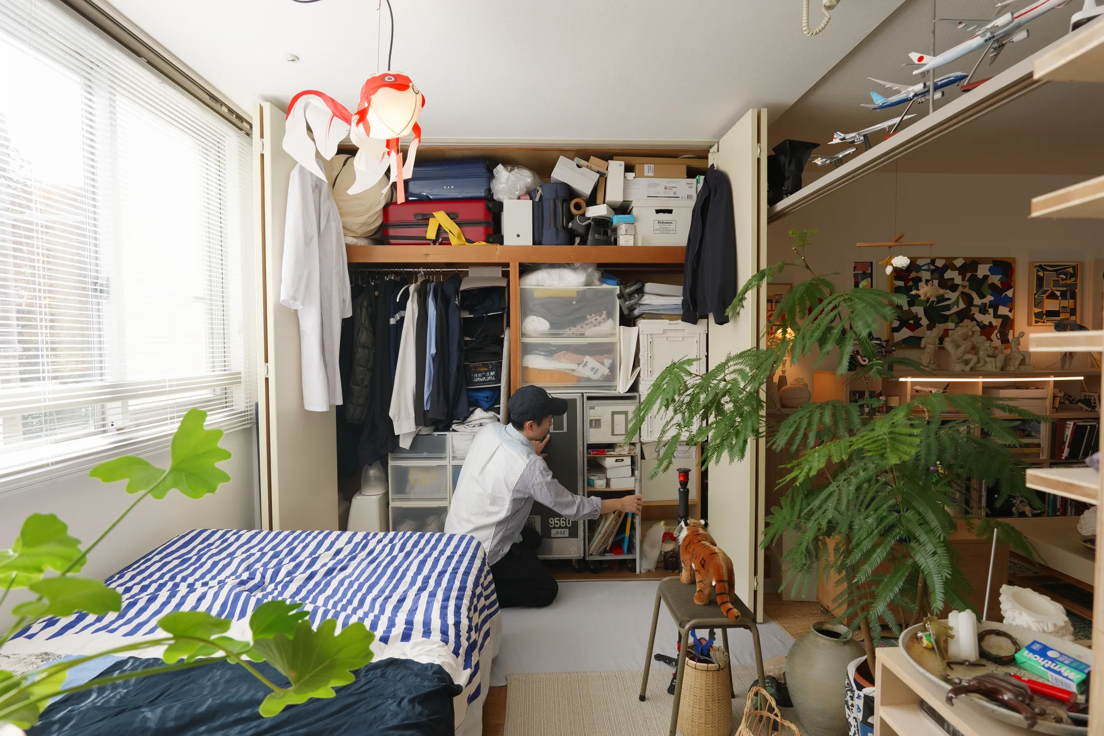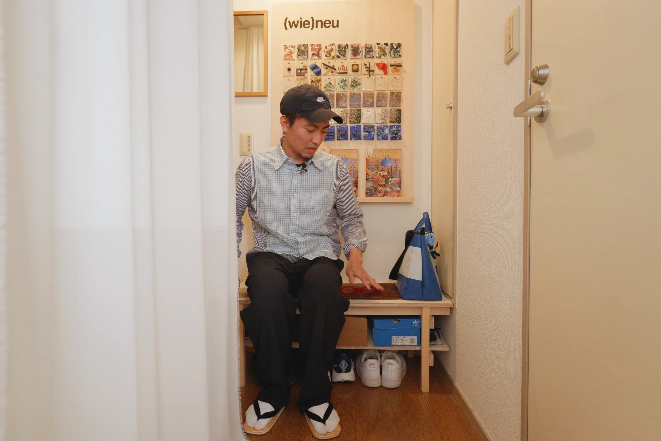 This is a home designed in layers: softened light, textured surfaces, and storage built around the things Ryo owns and loves. When something no longer feels fit for purpose, instead of replacing the piece, it gets cut down, rebuilt, or repurposed. The result is a space that shifts seamlessly between living, working, making, and resetting — with small systems and daily rituals that make living small feel calm, functional, and unmistakably his.