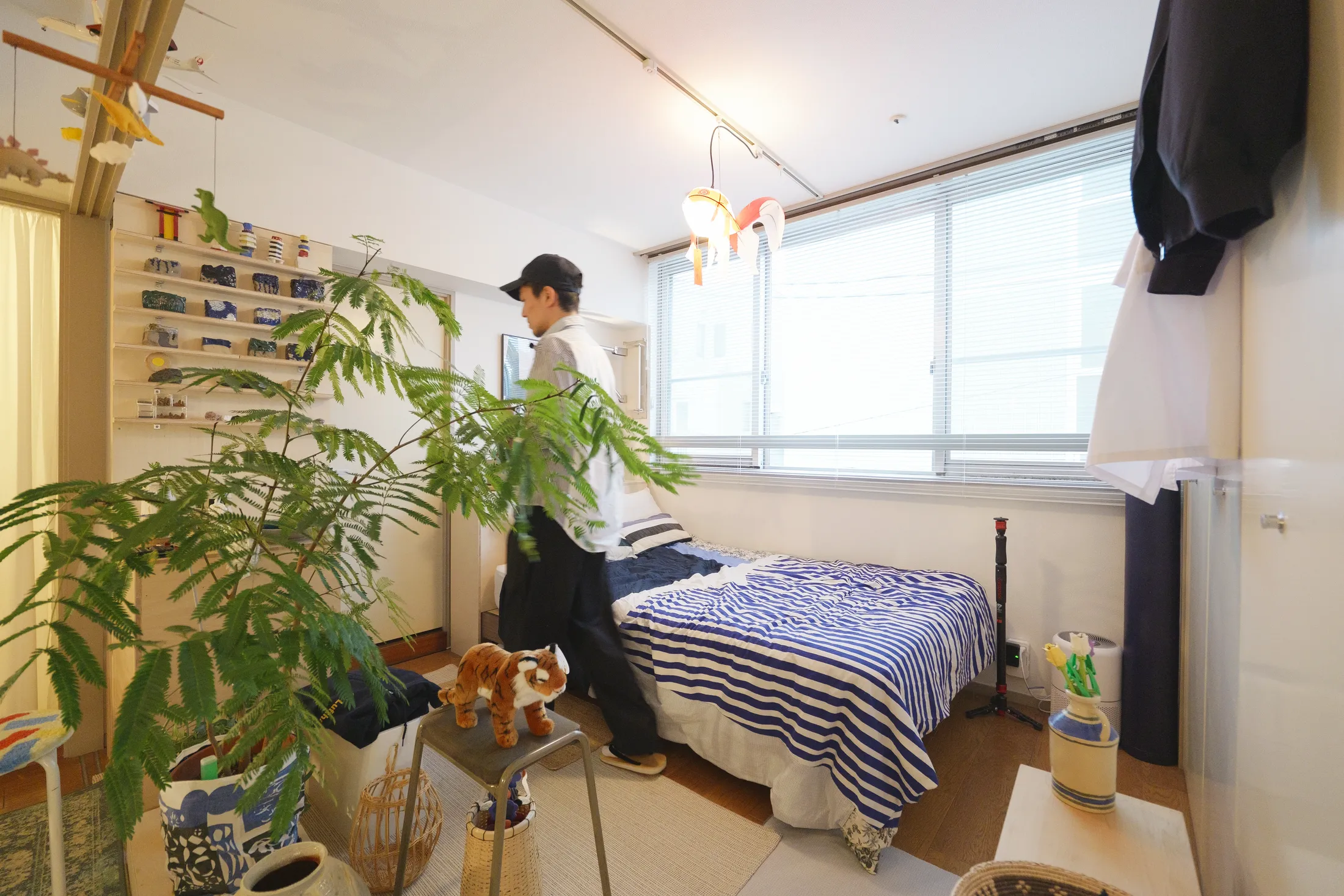With a background in fashion and a love of sewing, Ryo keeps his hands busy moving between ceramics, sewing, and other DIY projects — often made specifically for his home. Over the past three years, Ryo has made all of his furniture and continues to test the setup, tweaking it as he goes to make sure the space keeps working for him, and with him. Rather than chasing a “perfect” interior, he’s created a home that feels personal, practical, and comfortably lived-in — a place where making and everyday life sit side by side without the room feeling “too perfect”.