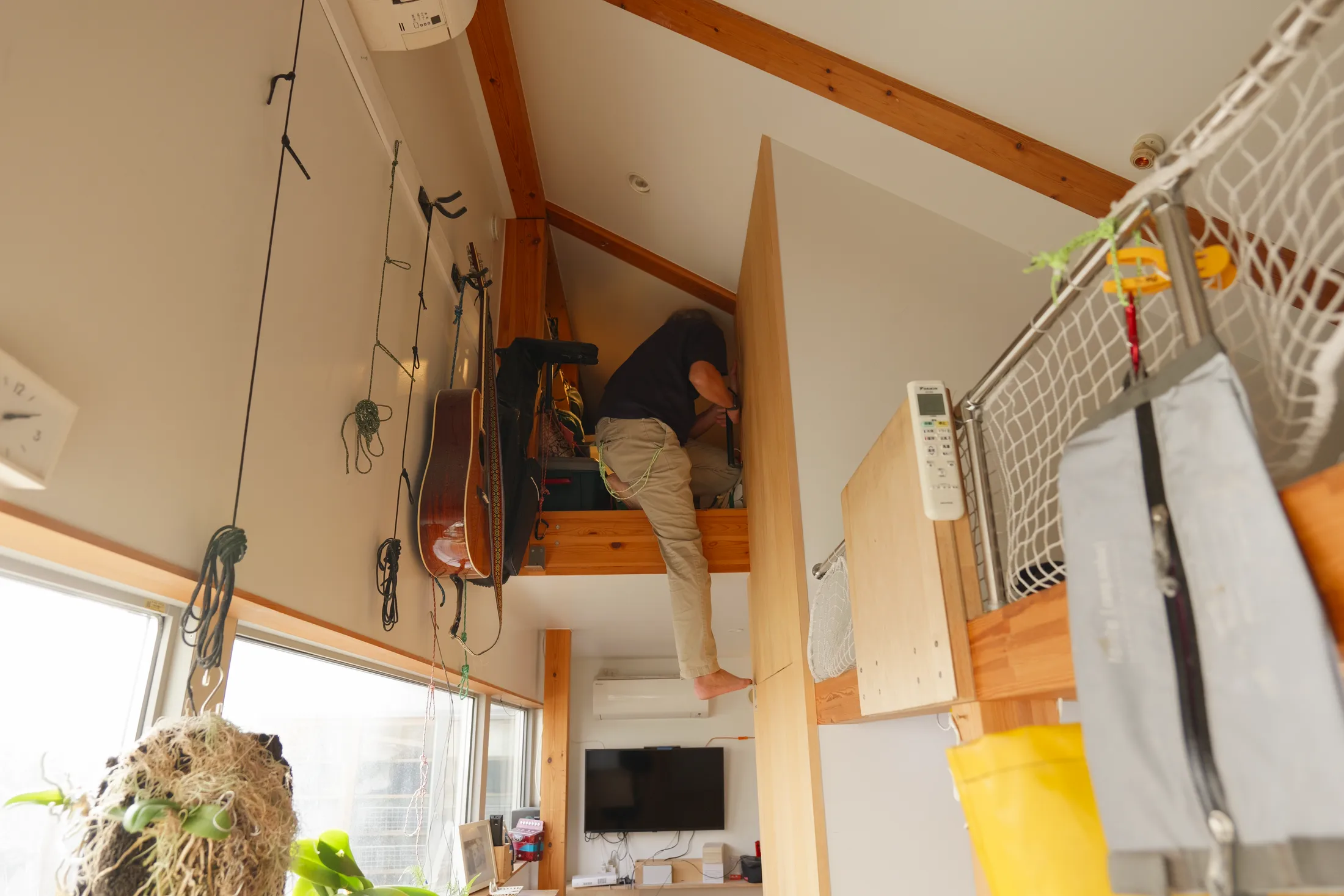 “The house is so small that I can feel what's going on,” Japanese artist and architect Nobufumi ‘Zajirogh’ Takahashi says of his compact home designed with the help of architect Yoshitaka Suzuki. “My wife and my kids are talking and laughing, you can always feel it, and that is a very good thing.”