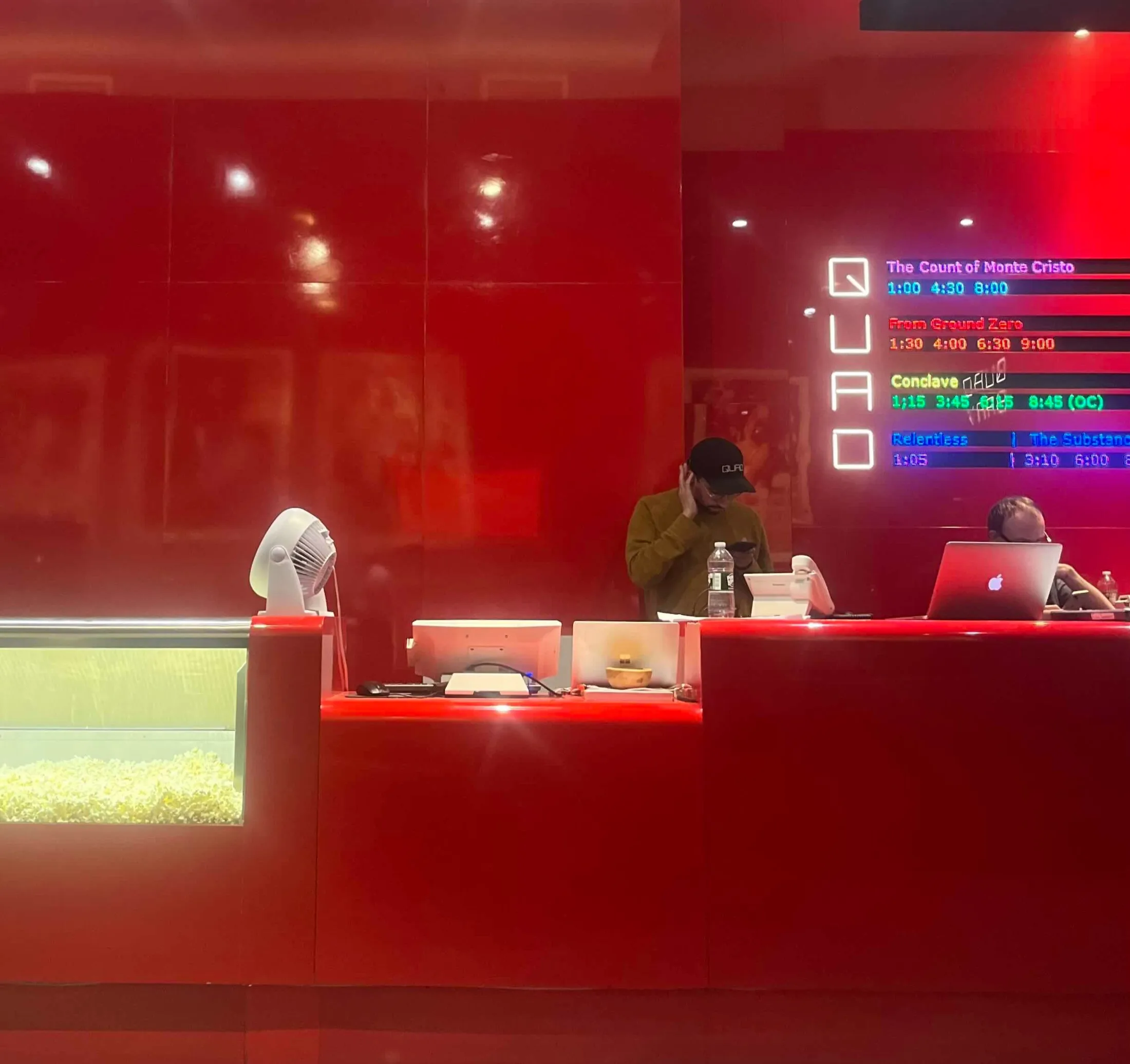 Another place people don’t talk about enough: Quad Cinema. Tucked away on a quiet Greenwich Village block, I recently saw The Substance here on an otherwise planless night, and now I can’t stop talking about the movie... or the theater. The stylized lobby is drenched in a glossy red finish—from the walls to the concessions counter.