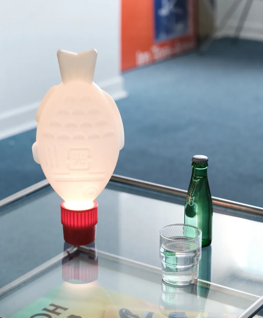 Angus was making artwork using the fish motif, and Jeffrey had been exploring ideas for designing a lamp. Jeffrey had the ‘lightbulb moment’: what if we combined the two and created an upscaled soy fish that actually lit up? Our goal was to literally highlight the big problem with small, seemingly insignificant single-use plastics and show that design can inspire change.