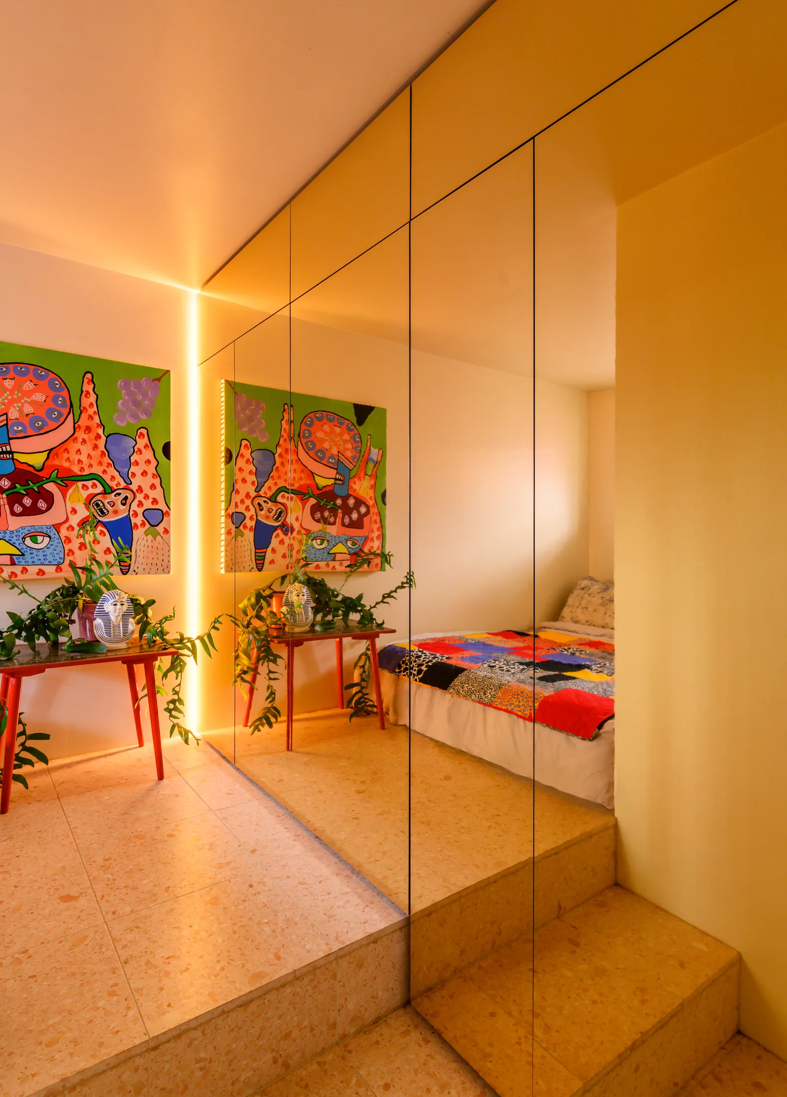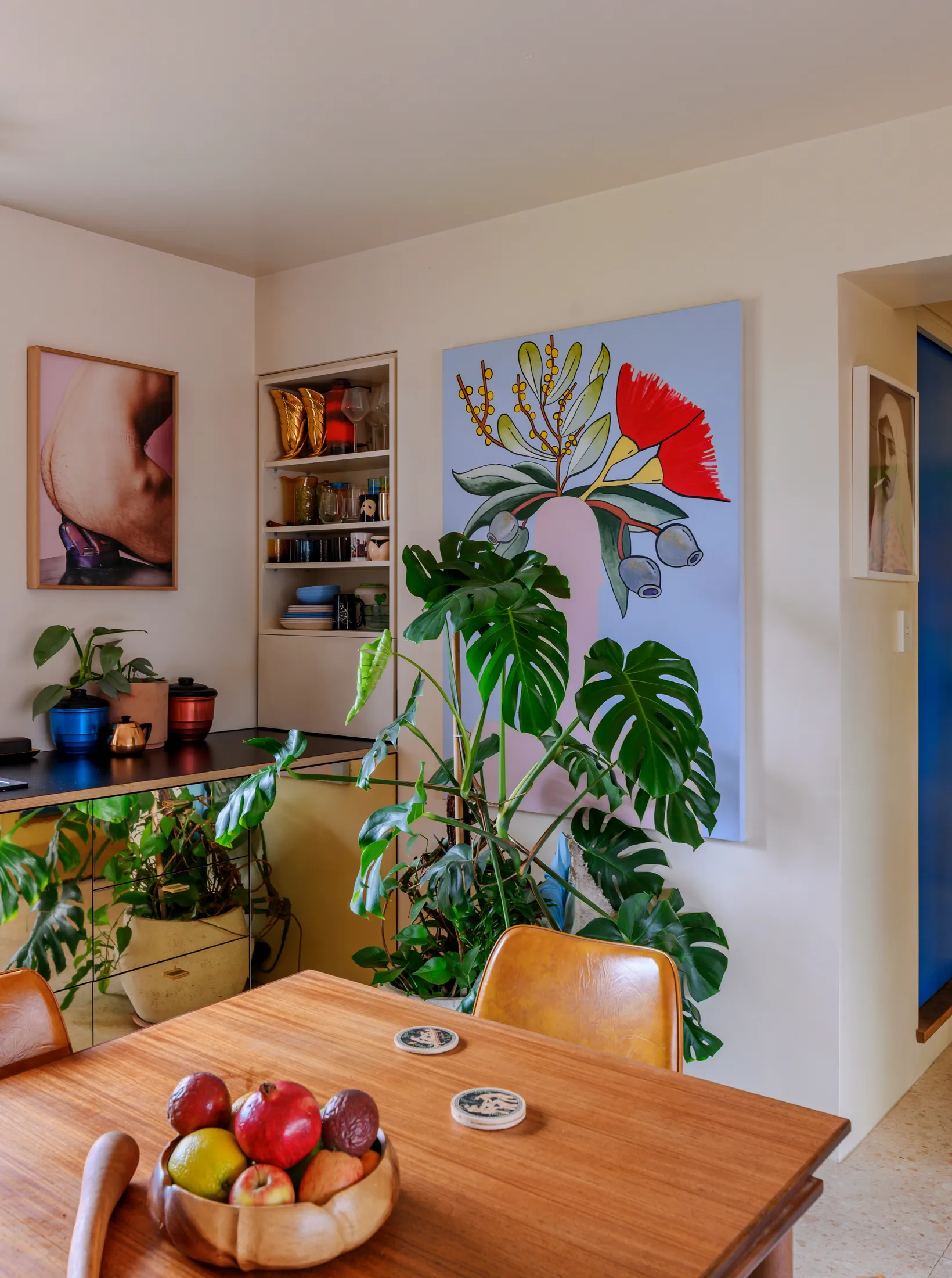 To honour the home’s history, Eggleton worked with traditional materials in a tonal palette, layering in California Modern influences, playful colour, and small but impactful layout changes. Highlights include enlarged skylights that capture the northern light, a vaulted upper ceiling with Juliet balcony that opens the bedroom to the outdoors, and a courtyard that Eggleton uses year-round as an extension of the living space. Throughout, he searched for ways to maximise natural light. “You can’t change the direction of the sun,” Eggleton says, “so capturing as much light as you can is so important in making the space feel bright and breezy.”